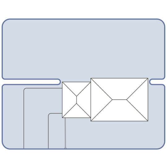 This layout is used when the entire property is being contained, but the pet is only allowed access to either the front or the back containment area at any given time. The highlighted graphic indicates where the pet is allowed to go.