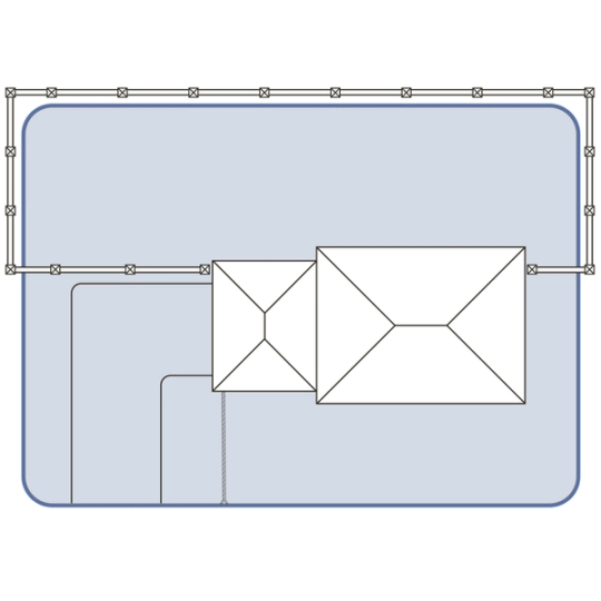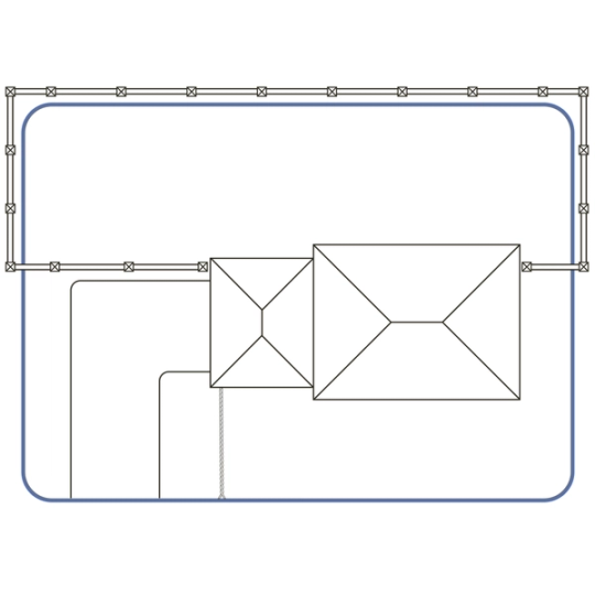 This layout is ideal for pets who escape by digging under or jumping over an existing fence. The highlighted graphic indicates where the pet is allowed to go.
