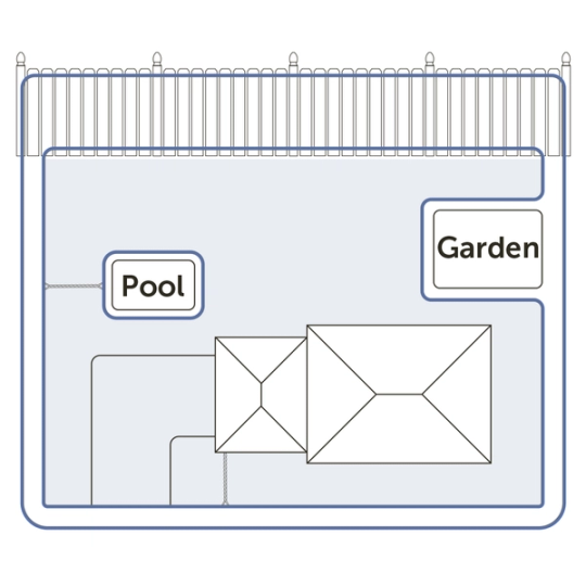 Double Loop Layouts are needed when certain areas of the property do not need containment. This requires the wire to be double backed on itself so that it can still create one single loop back to the wall unit.