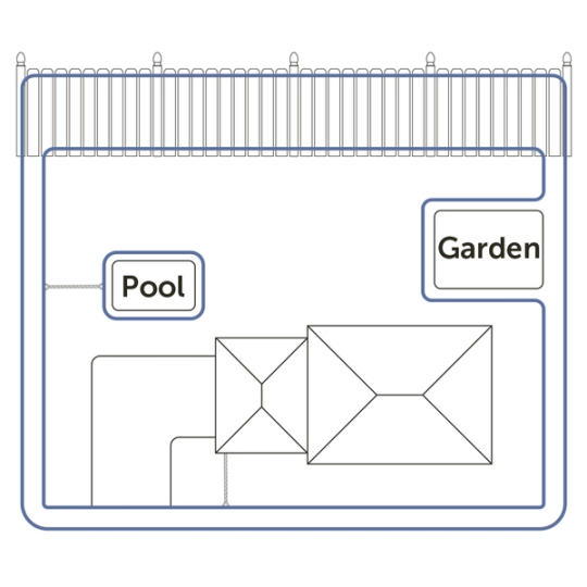 Double Loop Layouts are needed when certain areas of the property do not need containment. This requires the wire to be double backed on itself so that it can still create one single loop back to the wall unit.